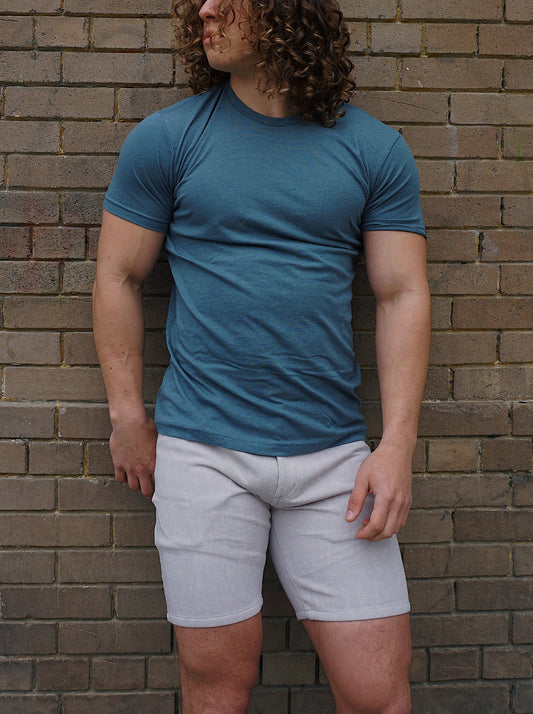 ROLO BASIC CREW NECK T-SHIRT - HEATHER COLOMBIA BLUE