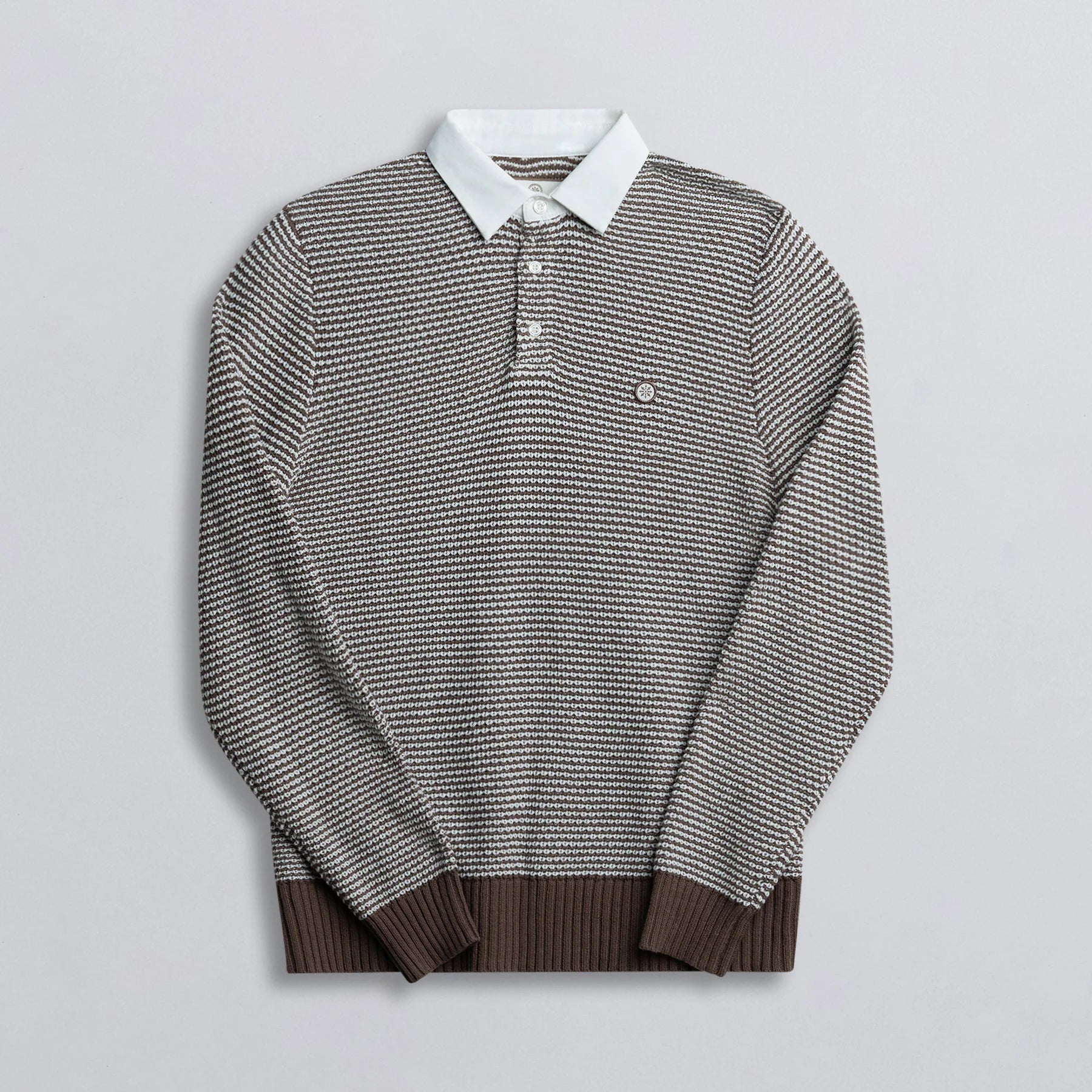 Pushing the fabrication of what a Rugby Shirt is, our two tone Rugby Shirt is the ultimate in elevating a historic piece of fashion. Using our knit construction, this piece bring depth to any outfit. Pair with a classic wool pant and boots for a great fall look.
