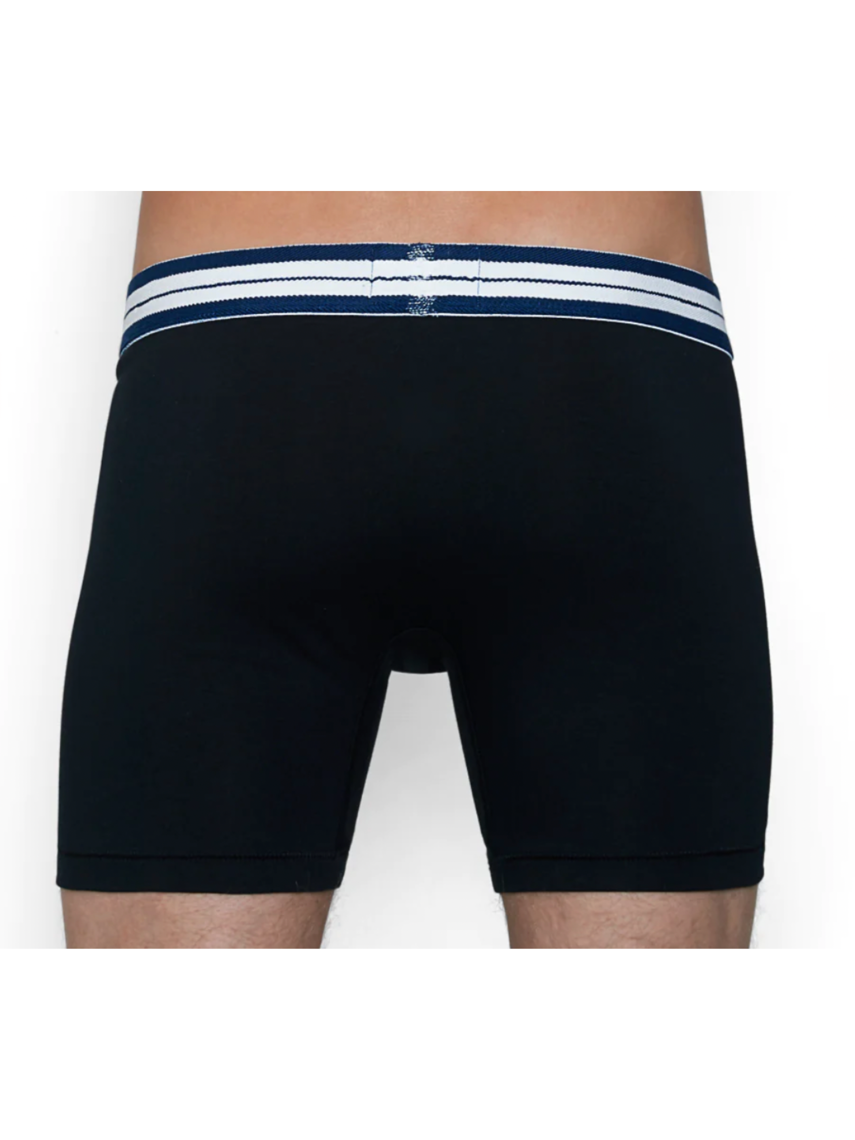 This organic cotton boxer brief is easy on the eyes and even easier on your skin. Bluebuck excels with its use of blues and grays, and this brief really keeps that tradition alive. You’ve got a low-rise silhouette that lengthens the look of your torso. Stitched down its center, a no-fly contoured pouch gives your manhood the support you need and the definition you want. Stretchy cotton allows for that full range of motion to stretch and sprawl out comfortably, and with a 10-inch leg, you can make chafing a thing of the past. To top it off, you’ve got a striped two-tone elastic waistband.