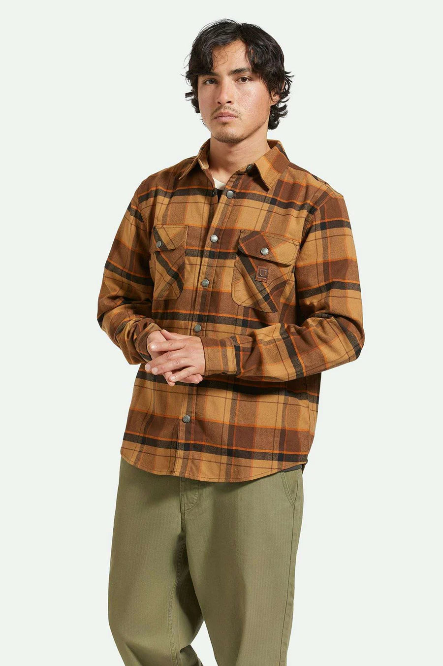 With stretch construction and a water-repellent coating, our Builders Bowery works hard for you. Functional chest pockets and reinforced snaps and seams make this flannel perfect on or off the job site. Comes with a Brixton-branded construction pencil.
