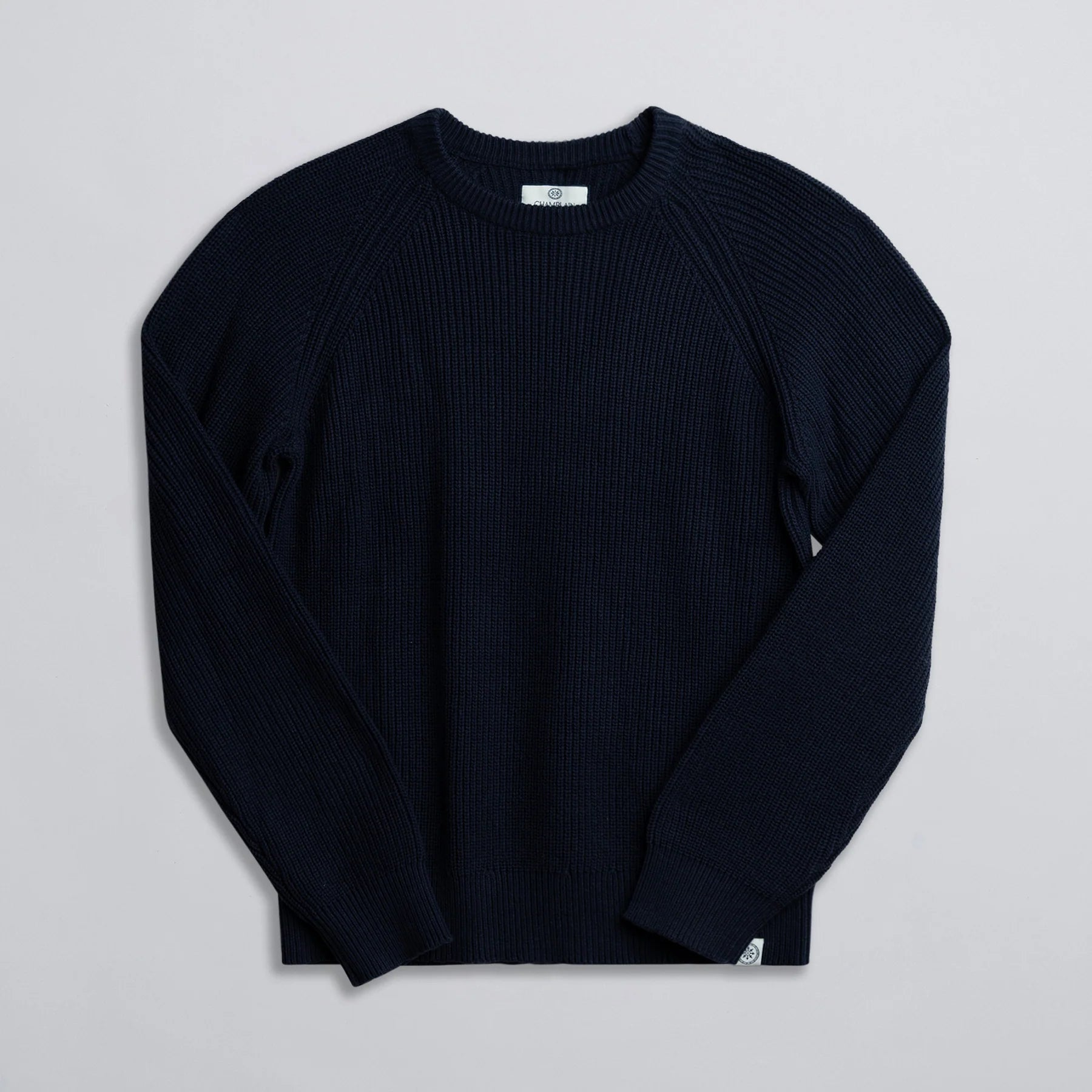 Timeless and rugged, this fisherman knit sweater is crafted from heavyweight cotton yarn for all-season comfort. Featuring a rich navy hue and raglan sleeves, it offers a relaxed yet refined silhouette perfect for layering. Finished with subtle branding at the hem for a minimal, modern touch.