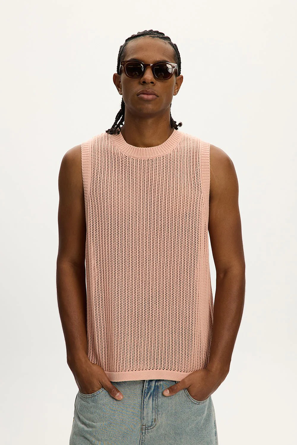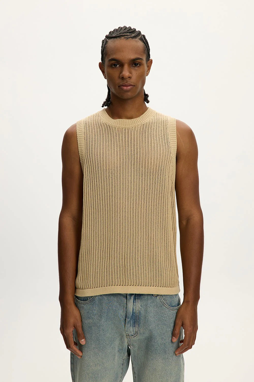The Knitted Sleeveless Vest. Relaxed, oversized fit. Soft knit fabric for effortless comfort and style.