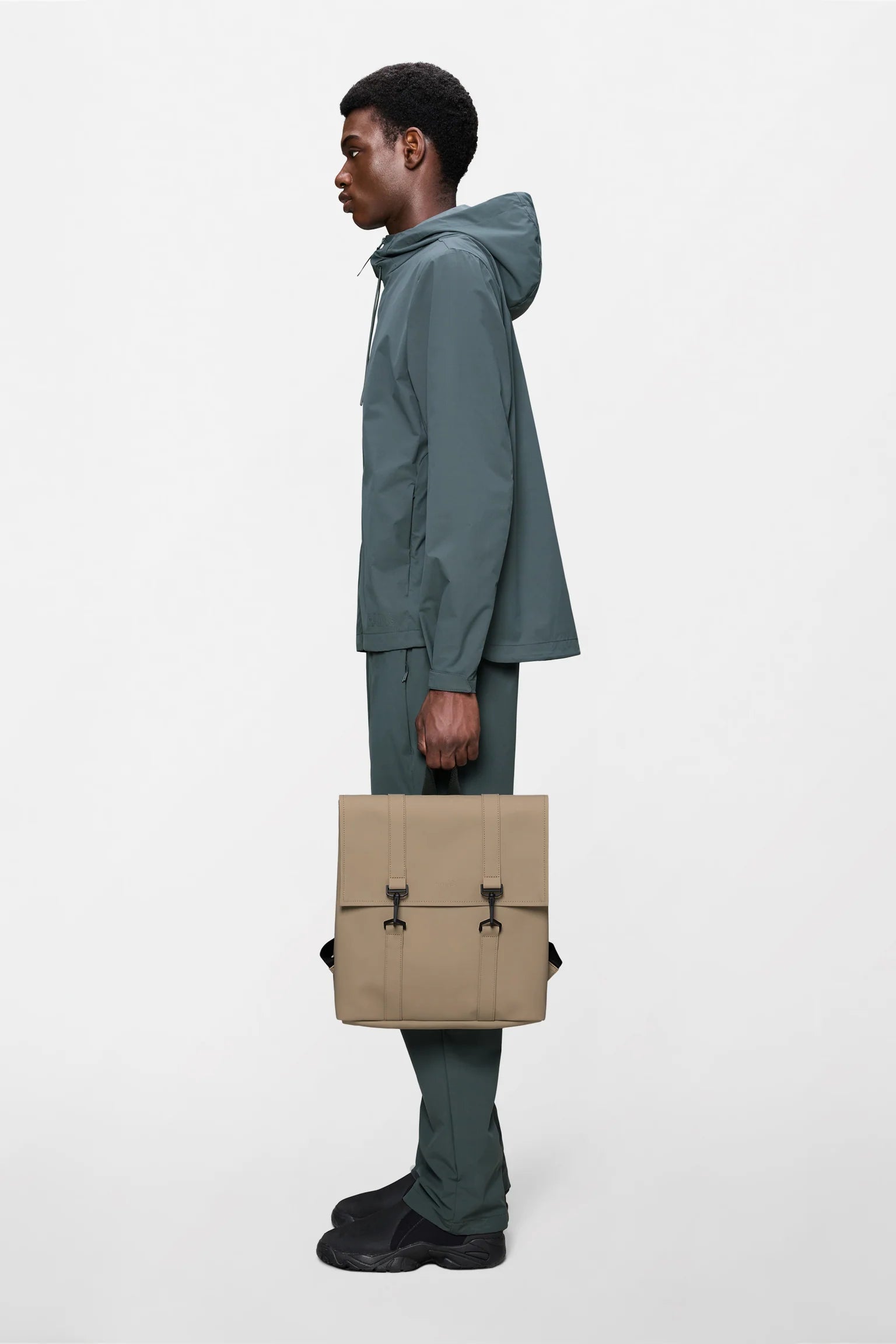 MSN Bag Mini is cut from Rains' signature PU fabric, engineered for carrying strength, durability and a smooth feel.
