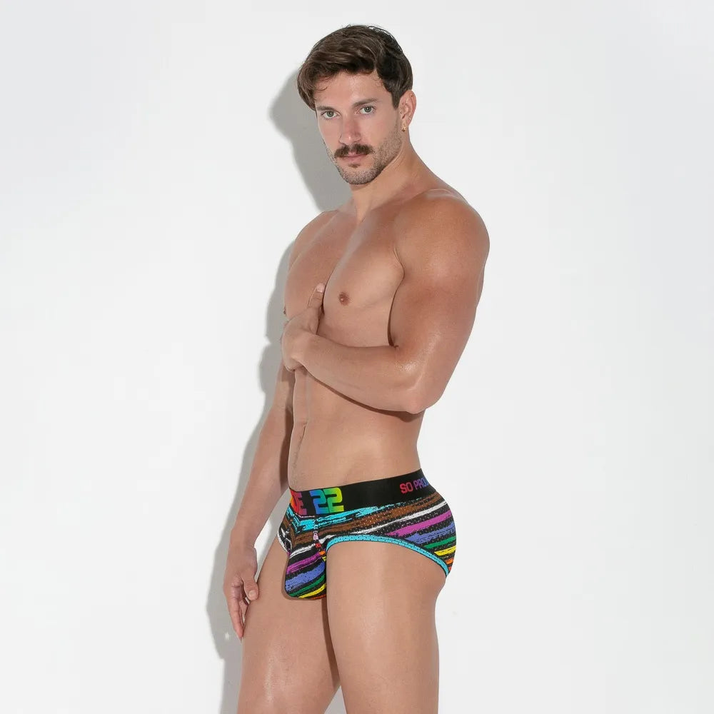 Low cut brief made of the finest sport mesh fabric. Super soft elastic waistband with our iconic CODE 22 logo signed with PRIDE colors.