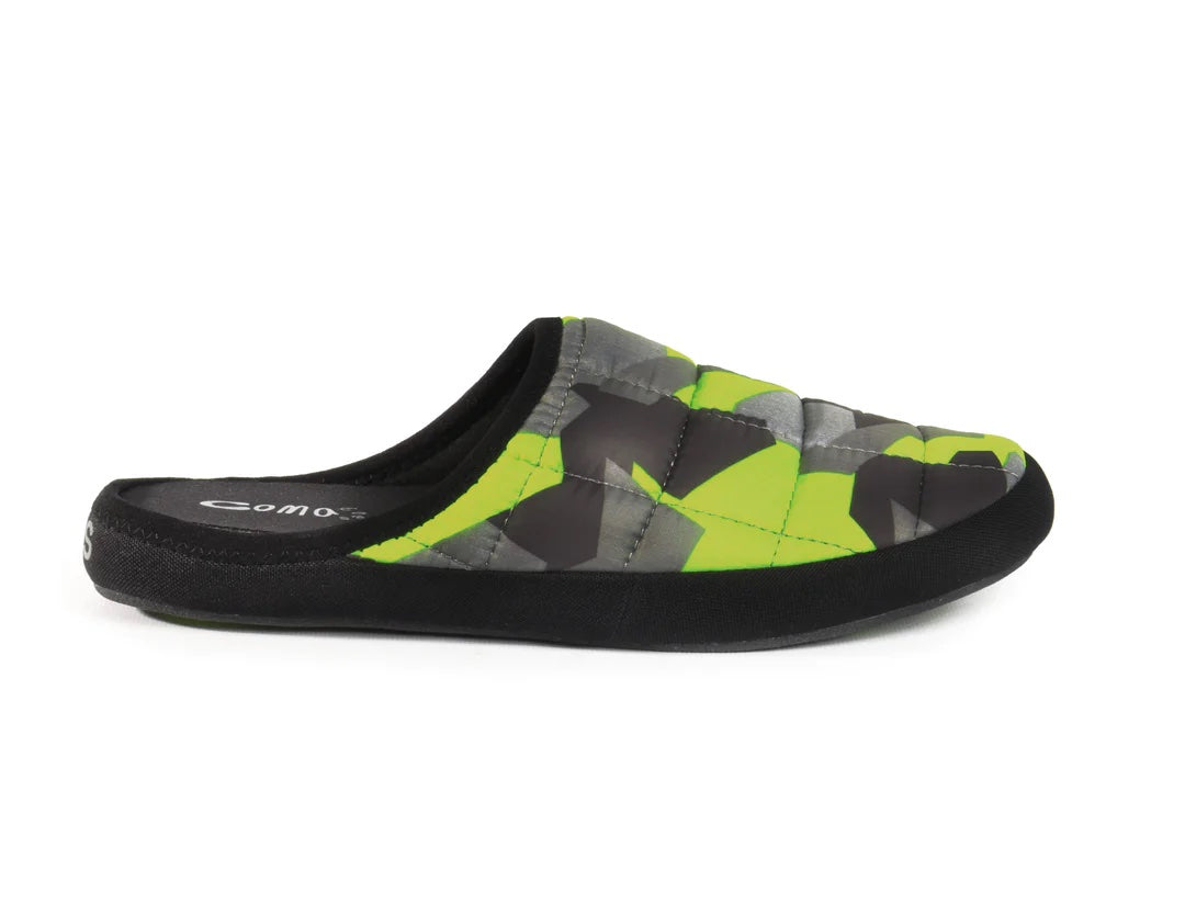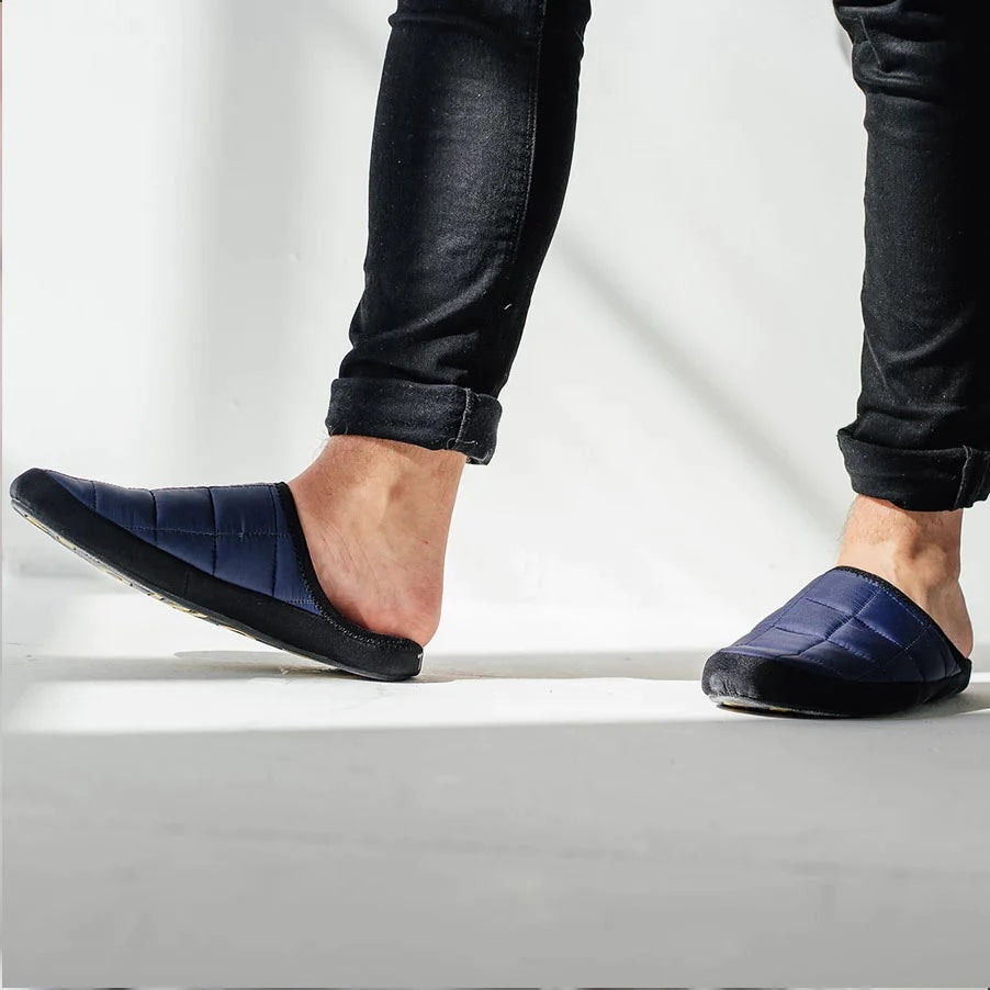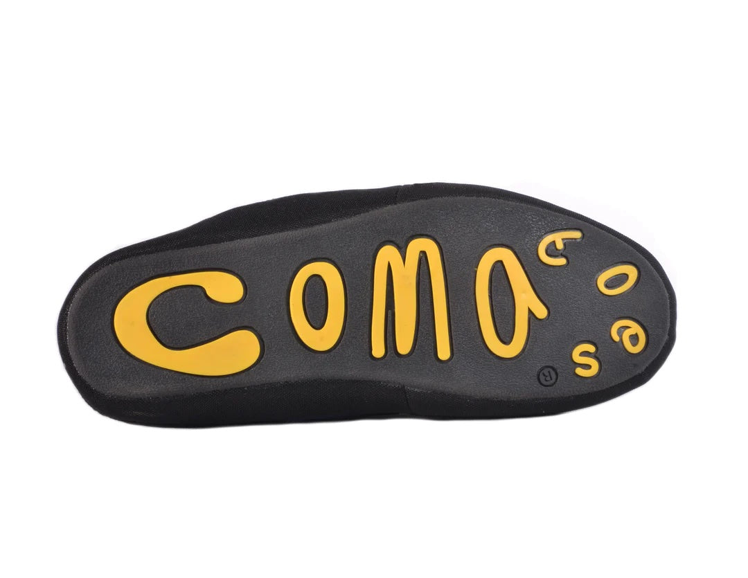 Coma Toes are slippers with your favorite 'puffy coat' nylon on top AND rubber, sneaker like sole on the bottom. This genius combo means you can wear them out and about, lounging, house parties, coffee shop, the movies, backstage, air travel or the tour bus!