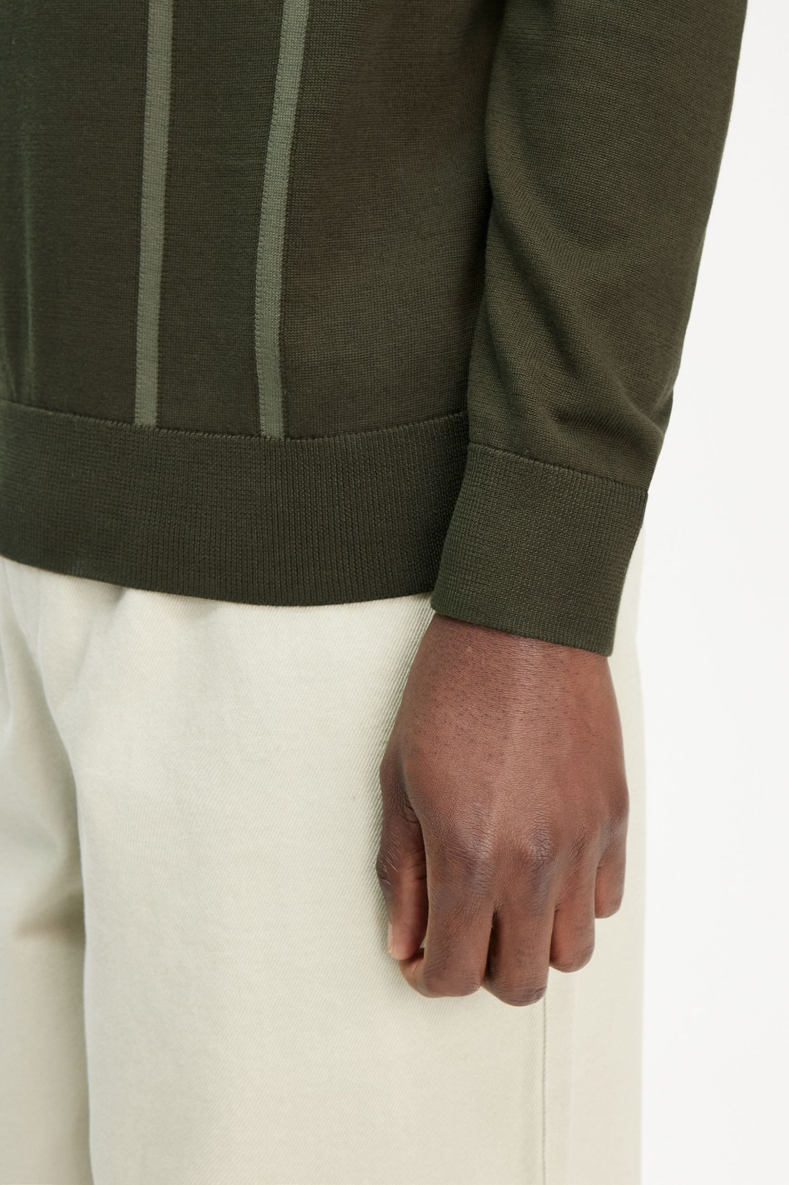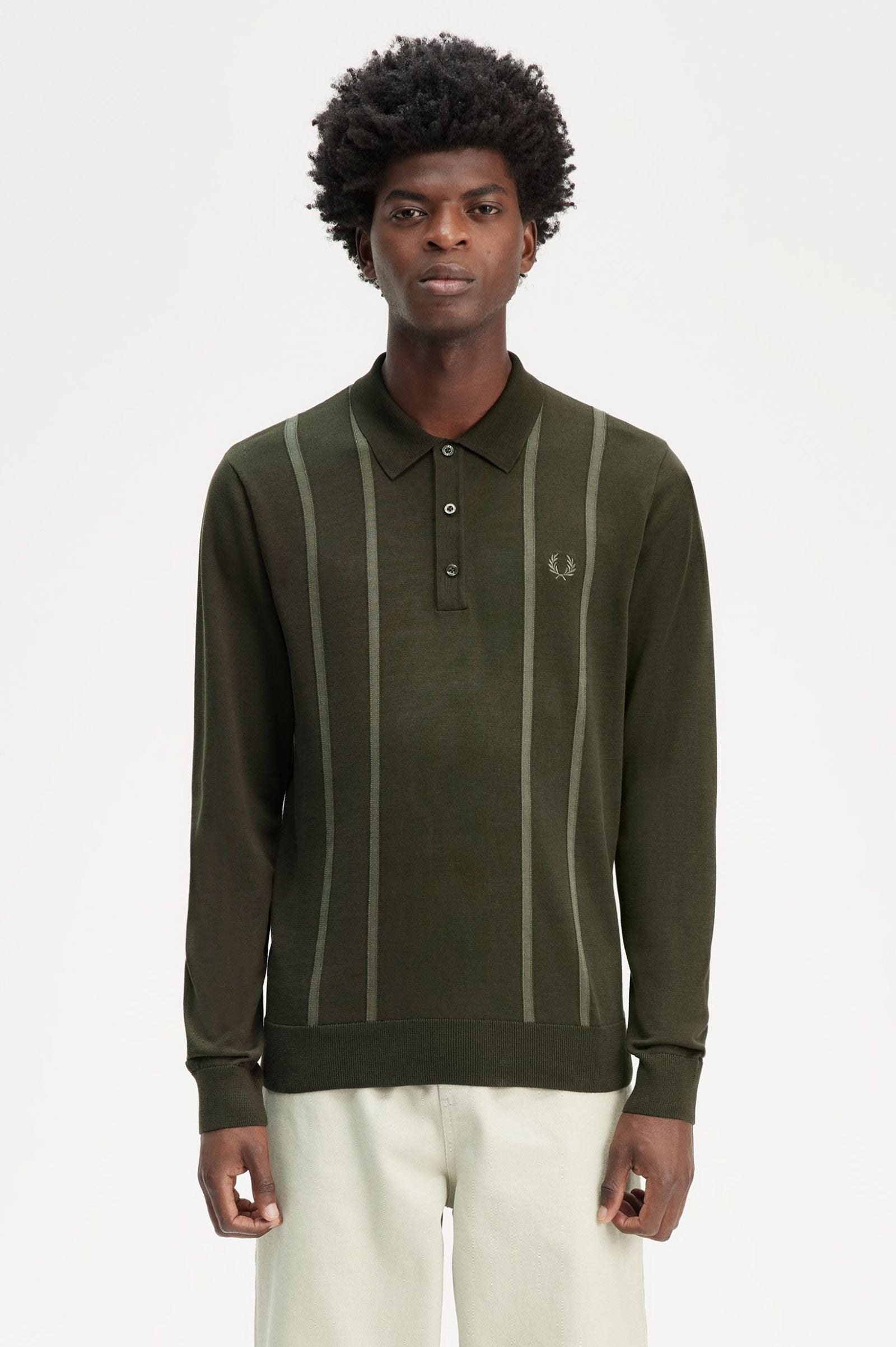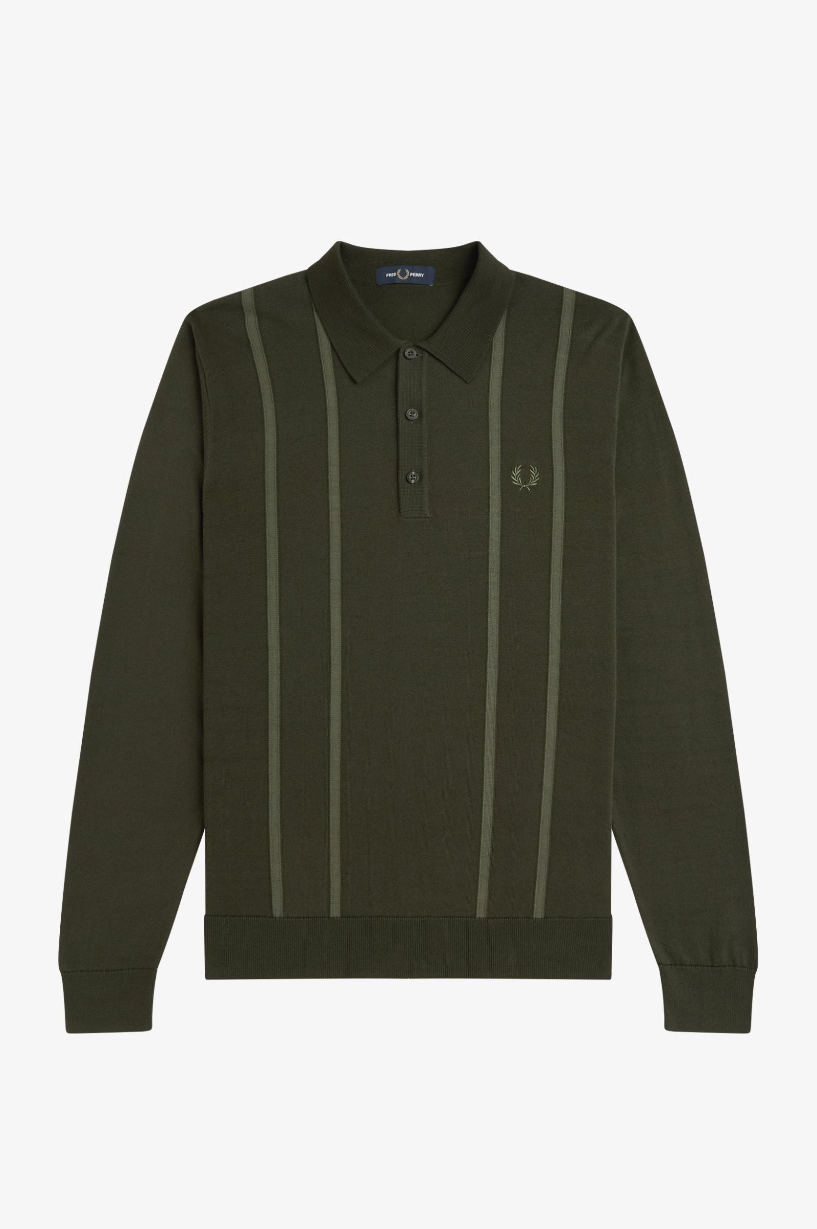 Our modernist-inspired knitted shirt in gassed cotton, with intarsia striping to the front body. A design rooted in our modernist heritage, knitted shirts are a mainstay of the Fred Perry uniform. Finished with all the smart Fred Perry detailing you know to expect - a three button placket with full milano (that means finely knitted) collar, branded buttons, and the embroidered Laurel Wreath in pride of place.